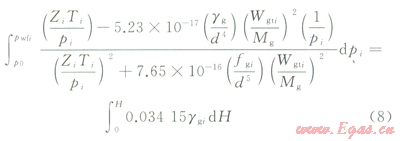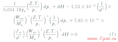 式中Wg為井口的干氣質(zhì)量流量,kg/d;Wgi為流入第i段微元體內(nèi)的干氣質(zhì)量流量,kg/d;pei分別為第i段儲(chǔ)層的外邊界壓力,pei=gzzi,MPa;gz為靜壓梯度;zi為第i層的儲(chǔ)層深度,m;pi為第i段儲(chǔ)層的內(nèi)邊界壓力,MPa。