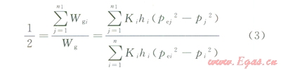 這種情況下,氣井產(chǎn)能異常的具體消除方法為:①基于測(cè)井資料的每一層的滲透率及儲(chǔ)層厚度,計(jì)算地層系數(shù)(Kh);②利用井筒壓力計(jì)算公式計(jì)算每一層的井筒壓力(pj)及地層壓力(pej);③利用式(3)進(jìn)行累加計(jì)算,當(dāng)累加到n1層時(shí),計(jì)算的產(chǎn)能比值恰好為1/2,即從第一層開始,到n1層的產(chǎn)能累積貢獻(xiàn)值為總產(chǎn)能的一半,這時(shí)n1層對(duì)應(yīng)的深度可作為放置壓力計(jì)的深度或利用公式計(jì)算井底流壓的深度,來進(jìn)行產(chǎn)能評(píng)價(jià),即取總產(chǎn)能的1/2對(duì)應(yīng)深度的井底流壓。