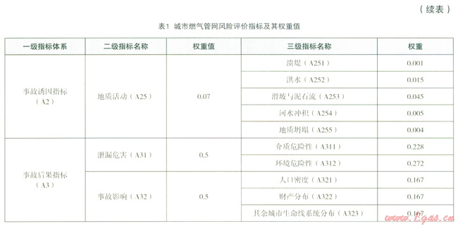 城市管網(wǎng)風(fēng)險因素間權(quán)重的選擇,參考國內(nèi)外經(jīng)驗[6],[8],各指標(biāo)權(quán)重分配見表1。