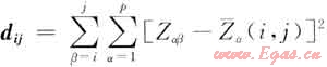 進(jìn)一步將測井信息作為變量進(jìn)行有序樣品分割并進(jìn)行測井相自動分層,方法按多變量離差值進(jìn)行最優(yōu)分割統(tǒng)計,要求各分層內(nèi)部樣本之間差異最小,各層段間差異最大。計算樣品段變差矩陣dij,其中Zαβ為樣本觀測值,