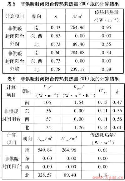 由式(2)與式(7)的比較可知:式(7)中tn取18℃;2010版中太陽輻射修正系數(shù)由較精確的計(jì)算得出;2010版中非供暖封閉陽臺(tái)的傳熱耗熱量不再像2007版那樣將墻與窗(門)分開計(jì)算。