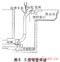 S型彎管吊裝見圖8。井壁豎管和兩端彎頭在地面上預(yù)制完成,經(jīng)無損檢測(cè)、防腐補(bǔ)口、補(bǔ)傷合格后,進(jìn)行吊裝。吊裝方法同L型彎管的吊裝方法,在焊接豎井下方管口時(shí)一定要把握好管道的方向。