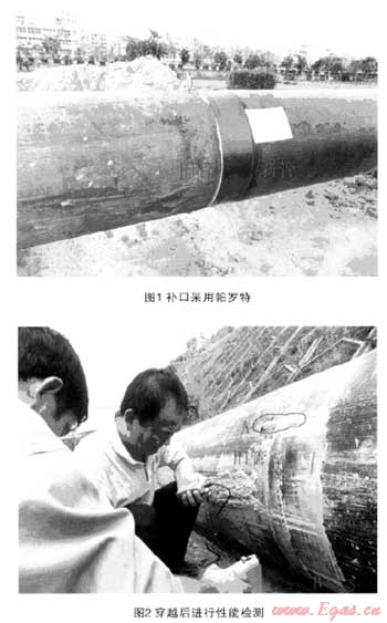 為考察帕羅特防腐層的耐劃傷特性,我們?cè)谄邩?biāo)段華榮路定向鉆穿越時(shí)進(jìn)行了應(yīng)用試驗(yàn)。為規(guī)避風(fēng)險(xiǎn),現(xiàn)場(chǎng)選在試拖段的補(bǔ)口處,由帕羅特施工商派員來(lái)深,直接手工涂裝。