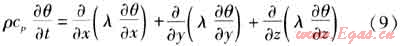 a. 墻體兩側(cè)均為第三類邊界條件墻體內(nèi)壁面邊界條件為: