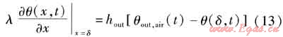 θ(δ,t)——t時(shí)刻墻體外表面溫度,℃