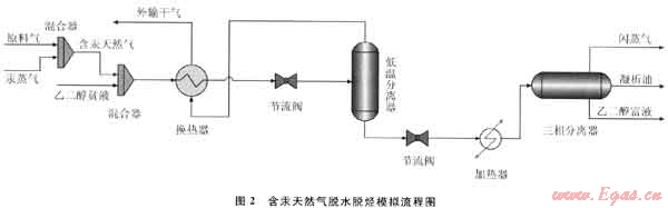 某含汞氣田天然氣處理廠脫水脫烴裝置的處理規(guī)模為500×104m3/d,原料氣溫度為48.5℃,壓力為12.1MPa,汞濃度范圍為50~150μg/m3(檢測結(jié)果),原料氣其他組分組成(摩爾分數(shù))為:氮氣0.598%,二氧化碳0.721%,甲烷97.826%,乙烷0.550%,丙烷0.044%,異丁烷0.007%,正丁烷0.012%,異戊烷0.005%,正戊烷0.005%,己烷0.008%,苯0.050%,庚烷0.008%,甲苯0.007%,辛烷0.020%,水0.139%。所用乙二醇貧液流量為1686.29kg/h,濃外輸干氣度為85%(質(zhì)量分數(shù))。要求外輸干氣的水露點不高于-10℃,烴露點不高于-5℃(輸氣管道末端操作壓力為1.6MPa時)。模擬過程不計熱損失。