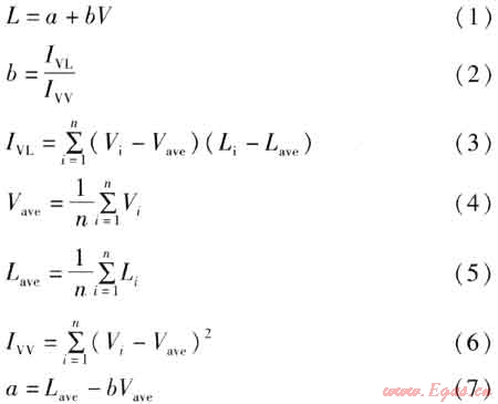 從20世紀(jì)末開(kāi)始,我國(guó)天然氣發(fā)展迅速,不僅建設(shè)了數(shù)條輸氣管道,配氣管道也得到了發(fā)展,統(tǒng)計(jì)資料也日趨完善。根據(jù)10余年統(tǒng)計(jì)資料,采用回歸分析法,建立配氣管道長(zhǎng)度與年燃?xì)庀M(fèi)總量之間的關(guān)系成為可能。1996—2008年我國(guó)配氣管道長(zhǎng)度與年燃?xì)庀M(fèi)總量的統(tǒng)計(jì)數(shù)據(jù)見(jiàn)表1[1],V為各年燃?xì)庀M(fèi)總量,單位為m3/a,L為各年配氣管道的長(zhǎng)度,單位為km。由表1數(shù)據(jù)建立配氣管道長(zhǎng)度與年燃?xì)庀M(fèi)總量的關(guān)系曲線,見(jiàn)圖1。由圖1可知,配氣管道長(zhǎng)度與年燃?xì)庀M(fèi)總量基本成線性關(guān)系,因此可采用回歸分析法建立二者的函數(shù)關(guān)系。