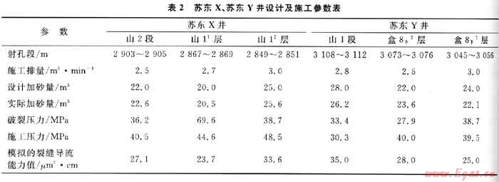為了評(píng)價(jià)粒徑細(xì)分后20/30目支撐劑對(duì)蘇里格氣田東區(qū)儲(chǔ)層的適應(yīng)性,2010年分別在蘇東X、蘇東Y井進(jìn)行了現(xiàn)場壓裂試驗(yàn),2口井試氣結(jié)果證明,使用20/30目支撐劑取得了很好的改造效果。