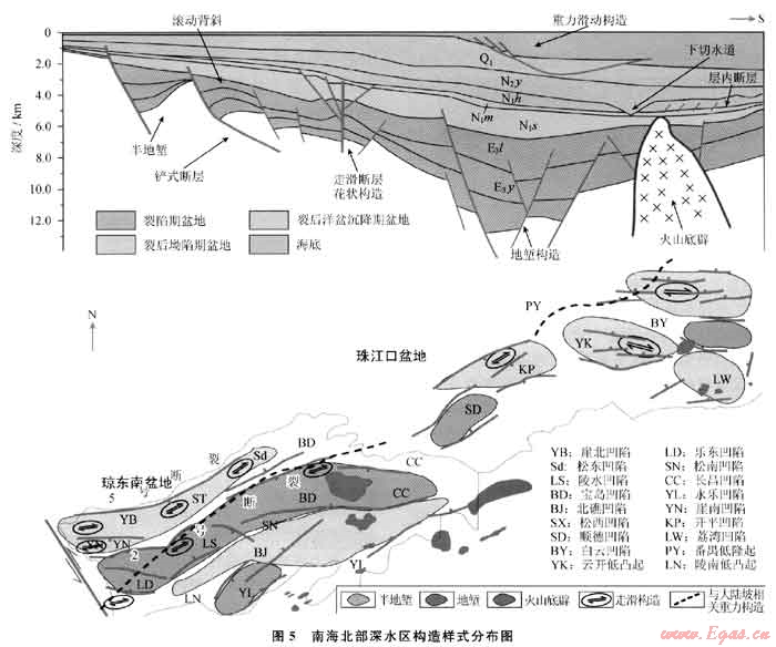 關(guān)鍵詞:瓊東南-珠江口盆地;深水區(qū);構(gòu)造樣式伸展構(gòu)造;走滑構(gòu)造;重力構(gòu)造;分布規(guī)律;南海