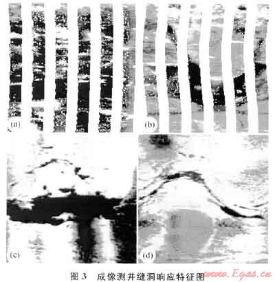 根據(jù)溶洞的分布特征及與孔、縫間的關系,可分為孔隙性溶洞和裂縫性溶洞。孔隙性溶洞即溶洞是溶孔被進一步溶蝕擴大后形成(圖3-a),這些溶洞周圍常密集分布溶孔,孔、洞也常呈層狀分布,相互間連通性好;裂縫性溶洞即溶洞是構造縫及少量成巖壓溶縫被局部溶蝕擴大形成的,溶洞常沿裂縫呈串珠狀或長條狀分布,縫、洞連通性好(圖3-b、c、d)。以小型溶洞為主,占82%,中型溶洞占13%,大型溶洞占5%。在白云巖層段中、小型溶洞相對發(fā)育,而在石灰?guī)r層段大型溶洞發(fā)育。在EMI測井剖面中,大型溶洞的高度可達0.5m。在鉆井中常出現(xiàn)鉆時降低、放空、井漏顯示,如某井放空0.3m,EMI測井反映溶洞特征明顯(圖3-c)。在不同的構造部位,溶}同的發(fā)育程度差異明顯,V3井區(qū)Zone1-Zone2的溶洞層段明顯比V1、V2井區(qū)發(fā)育,厚度為V1、V2井的1.5~2.0倍,表明從構造的西南段向東北段溶蝕作用有減弱的趨勢。同時,據(jù)巖石學特征、溶蝕孔洞內幾乎沒有充填以及溶孔、溶洞與裂縫的密切關系,認為溶蝕作用是在構造裂縫形成之后發(fā)生的。