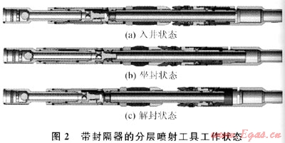 隨著我國(guó)天然氣勘探開發(fā)逐漸向致密砂巖氣、頁(yè)巖氣、煤層氣等非常規(guī)油氣藏領(lǐng)域深入,提高單井產(chǎn)量成為目前開發(fā)的首要目標(biāo)。而多級(jí)壓裂技術(shù)作為一種有針對(duì)性的壓裂技術(shù)成為致密砂巖氣藏、頁(yè)巖氣藏增產(chǎn)措施的有效手段。目前國(guó)內(nèi)外較新的分段壓裂工藝包括裸眼封隔器分段壓裂、連續(xù)油管水力噴射分層壓裂、不動(dòng)管柱水力噴射分段壓裂、連續(xù)油管噴砂射孔環(huán)空填砂壓裂、電纜橋塞分段壓裂等技術(shù),并各具特色[1~2]。