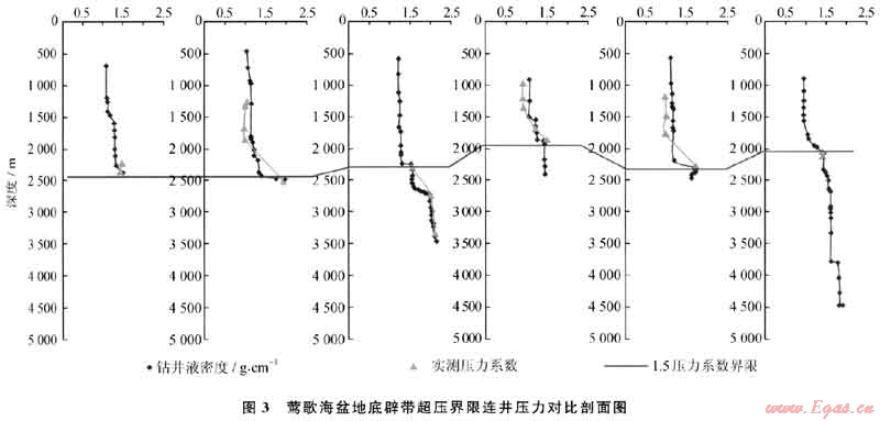 1) 鉆井安全是高溫超壓盆地鉆井過程中的重要因素,鉆前壓力預(yù)測是鉆井井身結(jié)構(gòu)設(shè)計的基礎(chǔ)。經(jīng)過多年的勘探實(shí)踐,總結(jié)出“速度差法”是鶯歌海盆地的鉆前壓力預(yù)測和鉆后壓力計算中一種適用的方法,并建立了相應(yīng)的計算數(shù)學(xué)模型,準(zhǔn)確性高。
