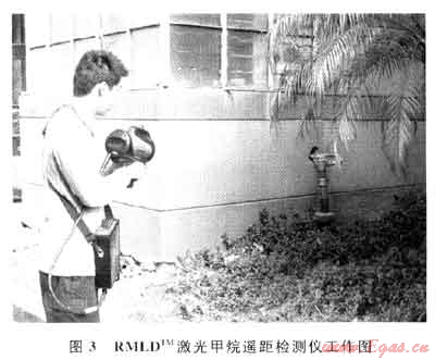 RMLDTM激光甲烷遙距檢測(cè)儀作為便攜式中的領(lǐng)先產(chǎn)品,采用了可調(diào)諧二極管激光吸收(TDLAS)技術(shù),可以調(diào)頻檢測(cè)C0和C02氣體的含量,并且能夠巡檢原來不能到達(dá)或不易到達(dá)的地方,不必將探頭置于可燃?xì)怏w的環(huán)境中,操作人員不用處于一些危險(xiǎn)的環(huán)境中,提高了工作環(huán)境的安全性,降低了操作人員的勞動(dòng)強(qiáng)度。同時(shí)檢測(cè)儀預(yù)熱時(shí)間短,只需2~3min,且具有自檢和標(biāo)定的功能。RMLDTM激光甲烷遙距檢測(cè)儀工作圖如圖3所示。