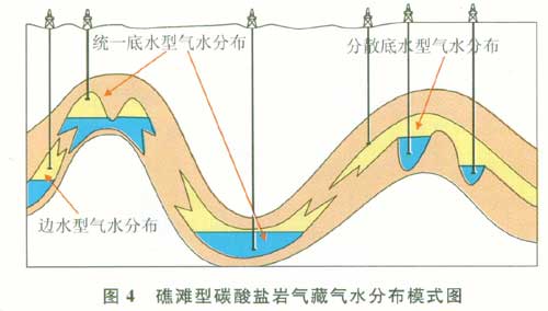 針對這些問題,綜合巖性、電性、物性及微觀孔隙結(jié)構(gòu)的研究,在儲層發(fā)育規(guī)律研究的基礎(chǔ)上研究氣藏氣水分布特征,弄清氣水分布控制因素,建立氣水分布模式有利于制定合理的碳酸鹽巖氣藏開發(fā)方式,確定礁灘型碳酸鹽巖氣藏高效開發(fā)技術(shù)對策,保證這一類型氣藏的高效開發(fā)。