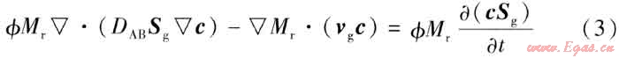 以惰性氣體代替天然氣作為部分墊層氣時(shí),惰性氣體與天然氣之間會(huì)發(fā)生相互混合擴(kuò)散。建立的氣體擴(kuò)散連續(xù)性方程如下: