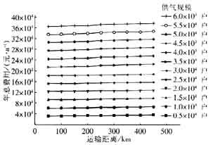 圖4 年運(yùn)輸費(fèi)用隨供氣規(guī)模的變化曲線