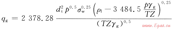 式中:qg為氣流攜帶液滴所需的最小流量,104m3/d;dt為油管直徑,m;p為氣體流動壓力,MPa;T為氣體流動溫度,K;Z為天然氣偏差系數(shù),無因次;γg為氣體相對密度,ρl為液體密度,kg/m3;σw為氣液表面張力,mN/m。