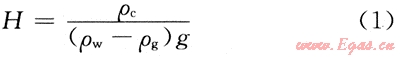 在毛細(xì)管壓力曲線上,一定壓力對應(yīng)的非潤濕相飽和度相當(dāng)于氣藏中一定高度的含氣飽和度,因此,把毛細(xì)管壓力曲線的縱坐標(biāo)用自由水面以上的液柱高度來表示,就可以用該曲線來確定出氣藏中任意高度上的含氣飽和度,從而得出整個氣藏的氣水縱向分布特征。自由水面以上液柱高度的計算公式為: