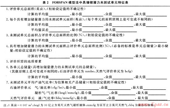 福斯潘模型(FORSPAN)法是USGS在1999年為連續(xù)型油氣藏資源評(píng)價(jià)而提出的一種評(píng)價(jià)方法。該方法以連續(xù)型油氣藏的每一個(gè)含油氣單位為對(duì)象進(jìn)行資源評(píng)價(jià),即假設(shè)每個(gè)單元都有油氣生產(chǎn)能力,但各單元間汗油氣性(包括經(jīng)濟(jì)性)可以相差很大,以概率形式對(duì)每個(gè)單元的資源潛力作出預(yù)測(cè)。以往也用體積法對(duì)連續(xù)型油氣藏資源潛力作過(guò)評(píng)價(jià)。在體積法中,原始資源量估算常用的參數(shù)主要是一些基本地質(zhì)參數(shù)(如面積、厚度、孔隙度等),這些參數(shù)有很大的不確定性,且各單元間關(guān)系密切、缺乏獨(dú)立性。因此,參數(shù)選取及標(biāo)準(zhǔn)確定較困難。福斯潘(FORSPAN)法建立在已有開發(fā)數(shù)據(jù)基礎(chǔ)上(圖2),估算結(jié)果為未開發(fā)原始資源量。因此,該方法適合于已開發(fā)單元的剩余資源潛力預(yù)測(cè)。已有的鉆井資料主要用于儲(chǔ)層參數(shù)(如厚度、含水飽和度、孔隙度、滲透率)的綜合模擬、權(quán)重系數(shù)的確定、最終儲(chǔ)量和采收率的估算。如果缺乏足夠的鉆井和生產(chǎn)數(shù)據(jù),評(píng)價(jià)可依賴各參數(shù)的類比取值。