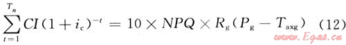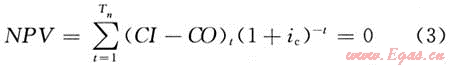 依據(jù)技術(shù)經(jīng)濟(jì)評(píng)價(jià)盈虧平衡原理,采用現(xiàn)值法,將投入和產(chǎn)出均折算為評(píng)價(jià)起始年的累計(jì)凈現(xiàn)值(NPV)為零作為極限,基本公式如下: