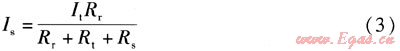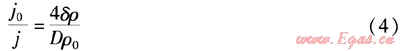 雜散電流流入土壤以后就會產(chǎn)生地電場,土壤中不同地電位之間便有電流流動,兩個不同區(qū)域之間電位差越大,電流就越大。當土壤全部都是均勻的介質時,電流分布也相對均勻。如果土壤中埋置有油氣管道時,管道中的雜散電流密度與土壤中的雜散電流密度之比見式(4)[2、3]: