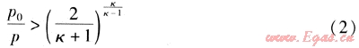 滿足式(1)時(shí),流動(dòng)屬于音速流。