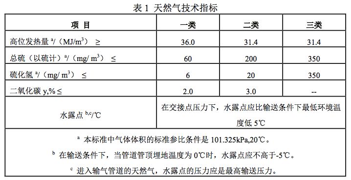 GB50028《城鎮(zhèn)燃?xì)庠O(shè)計(jì)規(guī)范》2006中對(duì)天然氣的質(zhì)量進(jìn)行了規(guī)定:天然氣發(fā)熱量、總硫和硫化氫含量、水露點(diǎn)指標(biāo)應(yīng)符合現(xiàn)行國(guó)家標(biāo)準(zhǔn)《天然氣》GB17820的一類氣或者二類氣的規(guī)定。