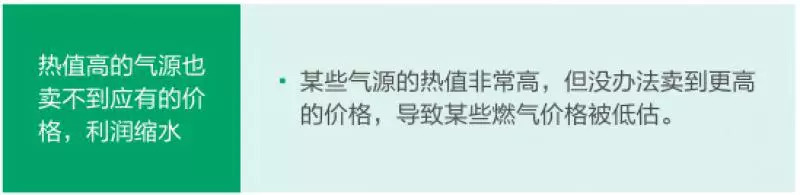 雖然以上氣源均滿足國(guó)家標(biāo)準(zhǔn)對(duì)于天然氣熱值的要求,但是不同的氣源生產(chǎn)的天然氣組份的差異導(dǎo)致的發(fā)熱值的差異明顯,而下游用戶沒(méi)有意識(shí)或者權(quán)利能選擇高熱值天然氣。
