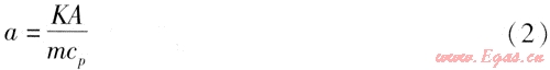 由于冷水溫度不斷變化,室內(nèi)空氣平均溫度等也會(huì)出現(xiàn)波動(dòng),因此K不為常量。該工程冷水機(jī)組關(guān)機(jī)與開(kāi)機(jī)的時(shí)間間隔約8h,冷水溫升較小,且室內(nèi)空氣平均溫度等變化不大,對(duì)傳熱系數(shù)的影響較小,因此在計(jì)算中將K視為常量。對(duì)于確定的空調(diào)系統(tǒng),A、m、cp均為定量,令: