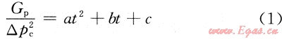 S6區(qū)塊是蘇里格氣田最早投產(chǎn)的區(qū)塊,其地質(zhì)條件與蘇里格氣田其他區(qū)塊相似,氣井的生產(chǎn)動態(tài)也基本相似。S6區(qū)塊第一批生產(chǎn)井于2002年投產(chǎn),生產(chǎn)期已超過7a,氣井的滲流邊界已達(dá)到或接近真實(shí)的氣藏邊界,處于低壓低產(chǎn)中后期。在實(shí)際生產(chǎn)中,絕大部分氣井只進(jìn)行了井口油套壓和產(chǎn)量的監(jiān)測,對氣井的生產(chǎn)數(shù)據(jù)進(jìn)行分析,發(fā)現(xiàn)氣井的單位套壓降采氣量(Gp/△pc2)隨生產(chǎn)時間動態(tài)變化,兩者之間呈良好的二次多項(xiàng)式關(guān)系,相關(guān)系數(shù)大于0.96。即