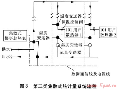 ② 第一、二類集散式熱計(jì)量系統(tǒng)適合于采用單戶系統(tǒng)(一戶一環(huán))的熱計(jì)量。第三類集散式熱計(jì)量系統(tǒng)既適合于傳統(tǒng)的單管供暖系統(tǒng)的熱計(jì)量改造,也適合于采用單管式供暖系統(tǒng)的新建居住建筑供暖系統(tǒng)的熱計(jì)量。