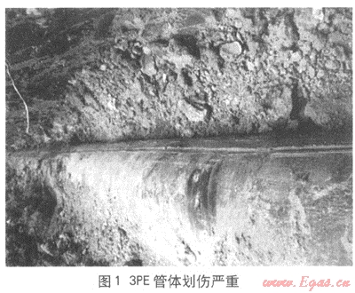 (1) 導(dǎo)向孔洞的彎曲部分及孔洞中凸起的巖石、卵石、礫石會(huì)對(duì)耐沖擊性能好、相對(duì)較柔軟的“3PE”防腐層造成摩擦和劃傷(圖1)。