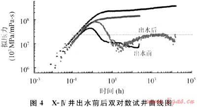 從前后兩次壓力恢復試井解釋看,氣層出水后大大降低了氣相的有效滲透率,產水后的氣相滲透率只有產水前的1/4左右(圖4)。