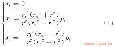 套管在井下情況的受力較為復(fù)雜,為了分析方便,主要考慮套管受內(nèi)壓和外擠作用(即管內(nèi)外壓差),而忽略軸向力和溫度對管柱應(yīng)力的影響時(shí),套管屬于中厚壁管(圖1)。