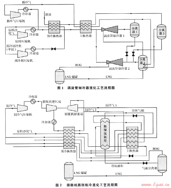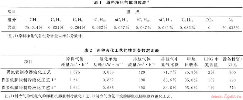 針對高含氮量的天然氣液化,通過模擬計(jì)算,對渦流管制冷器液化工藝和膨脹機(jī)膨脹制冷液化工藝的主要工藝參數(shù)進(jìn)行了對比分析,結(jié)果表明在原料氣消耗量、液化單元功耗、LNG中氮?dú)夂?、設(shè)備投資等方面,膨脹機(jī)膨脹制冷液化工藝均優(yōu)于渦流管制冷器液化工藝。