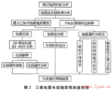 其次,重點(diǎn)區(qū)實(shí)施三維地震、強(qiáng)化儲(chǔ)層預(yù)測。在二維地震選區(qū)基礎(chǔ)上,優(yōu)選潛力區(qū)開展三維地震。充分利用三維資料信息量大、地質(zhì)內(nèi)涵豐富的優(yōu)勢,以主河道帶預(yù)測為基礎(chǔ),以有效儲(chǔ)層預(yù)測為核心,以疊前技術(shù)為主,以疊后技術(shù)為輔;進(jìn)行主河道帶預(yù)測、儲(chǔ)層及含氣性預(yù)測,并利用三維可視化手段對儲(chǔ)層及有效儲(chǔ)層進(jìn)行精細(xì)刻畫;最后通過綜合評價(jià)優(yōu)選高產(chǎn)富集分布區(qū)(圖2)。