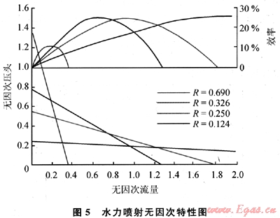 根據(jù)式(6),就可以作出如圖5所示的水力噴射無因次特性曲線。