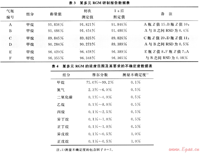 4) 通過(guò)認(rèn)證(或國(guó)家授權(quán))的多元RGM中含有的全部組分均應(yīng)給出其濃度(或范圍)及相應(yīng)的不確定度(或范圍),不允許使用“平衡值”的概念。