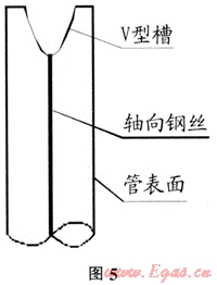 管口毛刺、翻邊清理完成后,為防止碰頭完成后天然氣沿骨架與PE材料之間空隙竄動而損傷管道本體,需對斷口管壁開槽、填料進行封堵,用砂輪機將斷口管壁磨成V形或U形(如圖5),采用與復合管母材相同材質(zhì)的PE焊條用熱風機同時加熱母材與焊條,當焊條與母材融化發(fā)軟時,將焊條壓入V形槽,注意須先將焊條氧化層打磨掉,封堵應將骨架完全覆蓋。在開槽時會有火花及粒狀或粉狀PE材料飛濺,施工人員應佩帶好防塵護具。