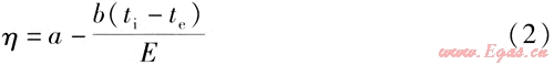 太陽(yáng)能集熱器日平均集熱效率η的計(jì)算式為[6]: