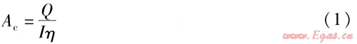 太陽(yáng)能集熱器集熱面積A的計(jì)算式為[6]:
