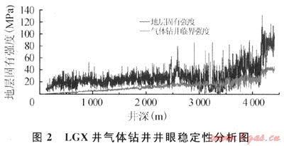 進行分析評價。利用此方法對七里北101井、龍17井及LGX井氣體鉆井井段實鉆資料驗證分析表明,當(dāng)?shù)貙幽滁c的巖石固有強度小于氣體鉆井條件下保持井壁穩(wěn)定的臨界強度時,井壁不穩(wěn)定,否則井壁處于穩(wěn)定狀態(tài)。