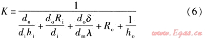 熱負荷確定后,可由總傳熱速率方程(1)求得換熱面積。其中總傳熱系數為: