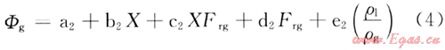 式中Wg為氣相的質(zhì)量流量;W1為液相的質(zhì)量流量;ρg為氣相的工況密度;ρ1為液相的工況密度。