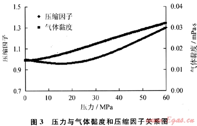 選取均質(zhì)頁(yè)巖氣藏中心的1口壓裂井,地層參數(shù)如下:絕對(duì)滲透率(K∞)為0.01mD 、有效厚度(h)為100m、氣井半徑(rw)為0.1m、氣藏邊界半徑(re)為250m、氣藏溫度(T)為100℃,頁(yè)巖氣相對(duì)密度(γ)為0.62,其中頁(yè)巖氣黏度(μ)和壓縮因子(Z)根據(jù)其組分及儲(chǔ)層溫度分別采用Hall-Yarborough法和Carr-Burrows圖版法獲得[8](圖3)。