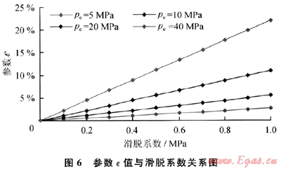 由圖6及式(11)可以看出:滑脫系數(shù)(b)越大,供給邊界壓力(pe)越小,參數(shù)ε越大,氣體滑脫對(duì)氣井生產(chǎn)影響越大;當(dāng)邊界壓力(pe)較低時(shí)(如pe≤5MPa),參數(shù)e受滑脫系數(shù)(b)影響較大,氣體滑脫效應(yīng)對(duì)氣井生產(chǎn)影響較大;而當(dāng)邊界壓力(pe)較大時(shí)(如pe≥10MPa),參數(shù)ε受滑脫系數(shù)(b)影響較小,氣體滑脫效應(yīng)對(duì)氣井生產(chǎn)影響較小,小于10%。這一計(jì)算結(jié)果與室內(nèi)巖心滲流實(shí)驗(yàn)結(jié)果也是完全一致的,說(shuō)明低滲氣藏儲(chǔ)層滑脫效應(yīng)決定于孔隙壓力大小的結(jié)論是正確的。