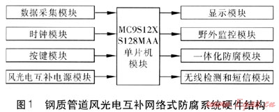 2 風(fēng)光電互補網(wǎng)絡(luò)式防腐系統(tǒng)硬件結(jié)構(gòu)