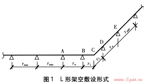 即L形架空敷設(shè)供熱管道轉(zhuǎn)角兩側(cè)活動(dòng)支架的最大允許間距為0.816rmax。