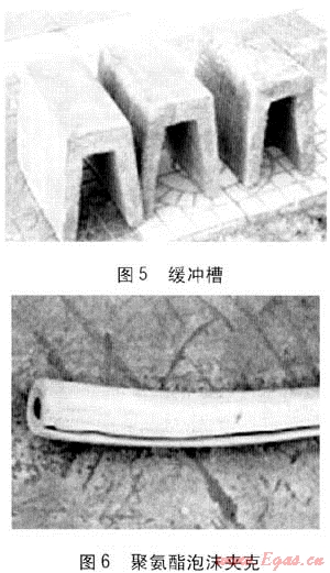 c. 在管道上方安裝混凝土緩沖槽,緩沖槽開口朝下放置,并整齊排列,見圖8右。