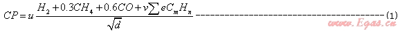 1.燃燒勢(shì)(CP)是反映燃具燃燒狀態(tài)的燃?xì)馓匦詤?shù)。它既反映燃燒速度對(duì)離焰、回火的影響,同時(shí)還反映火焰高度對(duì)煙氣中CO含量的影響。燃燒勢(shì)不是燃燒速度。CP值與燃燒速度也不單純呈比例關(guān)系。這樣看來(lái)稱其為燃燒速度指數(shù)不是非常合適,也容易與韋弗燃燒速度指數(shù)相混[3] 。